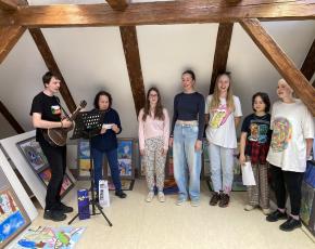 Společná výstava našeho výtvarného oboru a grafického designu byla k vidění v květnu a červnu roku 2025 ve výstavních prostorech podkroví sušické radnice. Slavnostní vernisáž proběhla 14. května 2025, o hudební zpestření se postarali žáci a učitelé grafického designu.