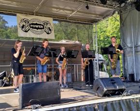 Úspěšný saxofonový soubor pana učitele Martina Kanaloše letos samostatně vystoupil na výročí kašperskohorské taneční skupiny Power, která ke svým narozeninám uspořádala velkolepý festival v Radešově.