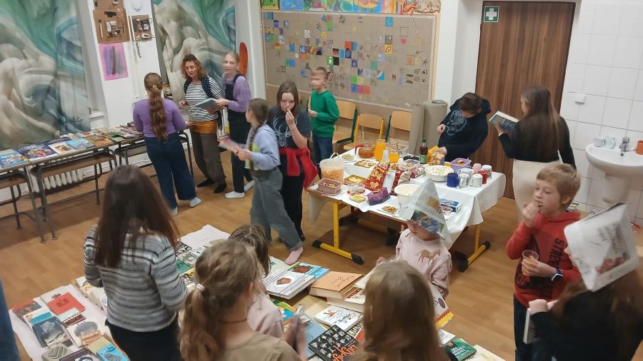 Druhý ročník literární akce našeho dramaťáku, na které si žáci představují a také vypůjčují své oblíbené knihy. Kromě dalších aktivit a společně stráveného času čekalo na účastníky i bohaté občerstvení. Kamarádi, knížky a k tomu něco dobrého – krásně strávené odpoledne v naší škole!